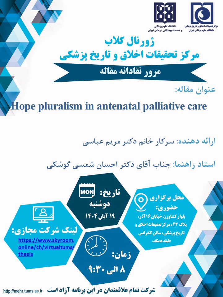 It is announced that the Journal Club Presentation session will be held at "Medical Ethics and History of Medicine Research Center" From 8:00 to 9:30 On Monday, November 10th, 2025.